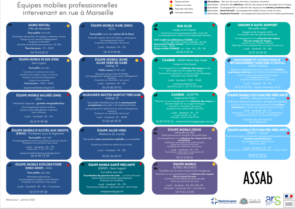 Voici la mise à jour du poster des équipes mobiles professionnelles intervenant en rue à Marseille.