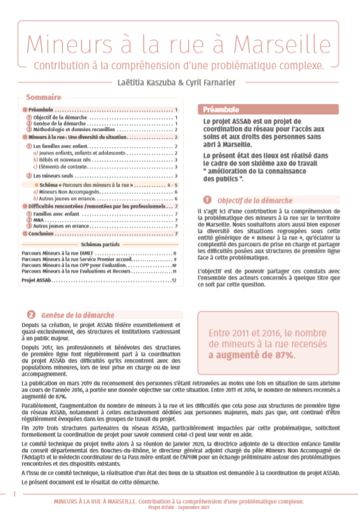 Diagnostic qui apporte des éclairages sur les différentes situations qui existent et qui a permis de produire des schémas explicatifs des parcours de prise en charge des personnes supposées mineures à la rue et qui ne sont pas accompagnées d’adulte.