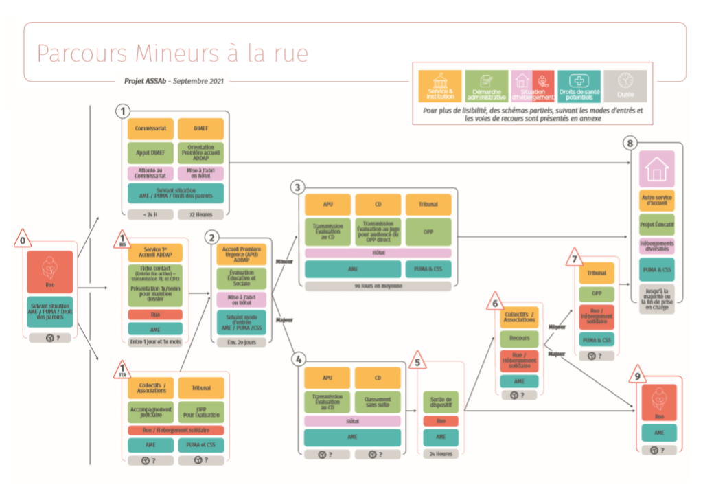 Un des outils qui s’en dégage est le schéma des parcours de prise en charge quand ils sont seuls à la rue.