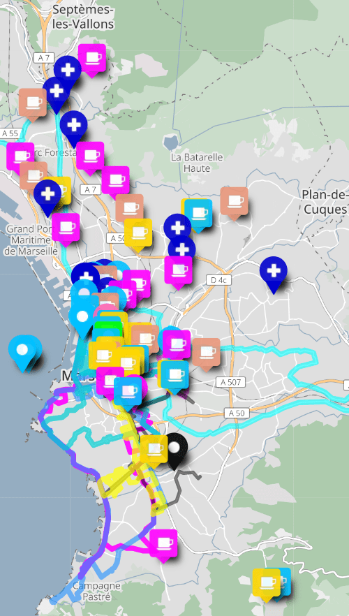 La Welcome Map développée par le collectif transbordeur référence les différentes structures liées à l’aide des premiers arrivants à Marseille.