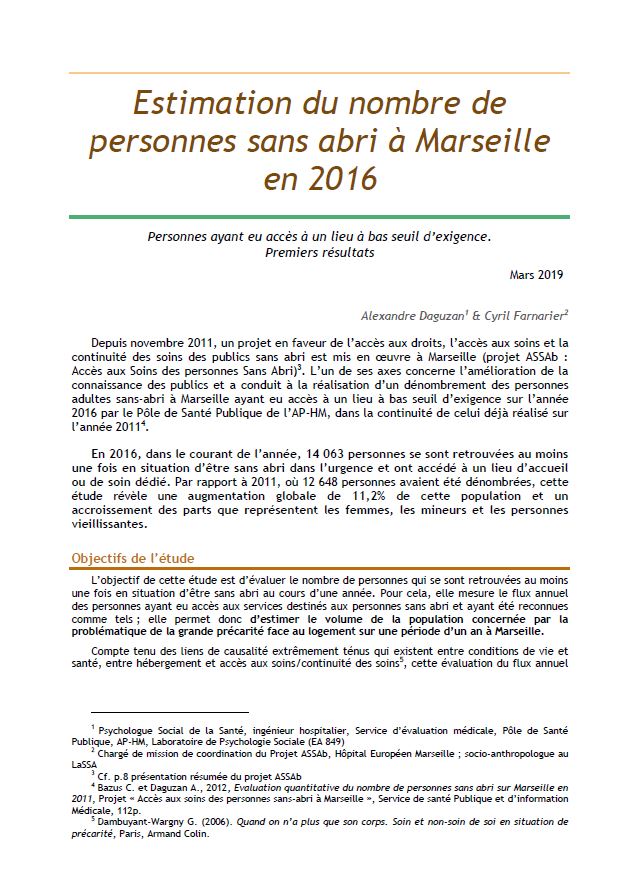 Ces études ont été réalisées par le Pôle de Santé Publique de l’AP-HM en partenariat avec le projet ASSAb.